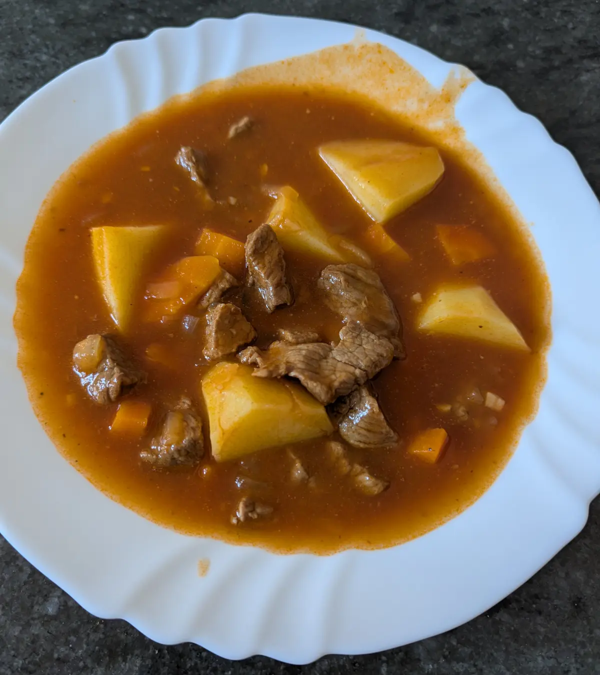 Cuando vuelva a hervir echamos la ternera y salpimentamos.