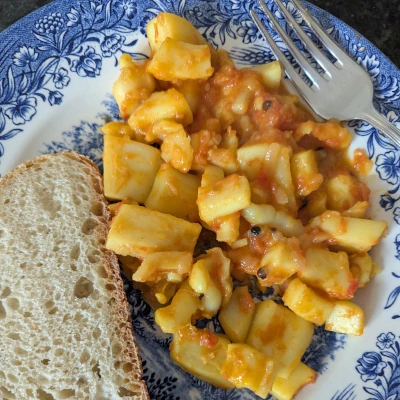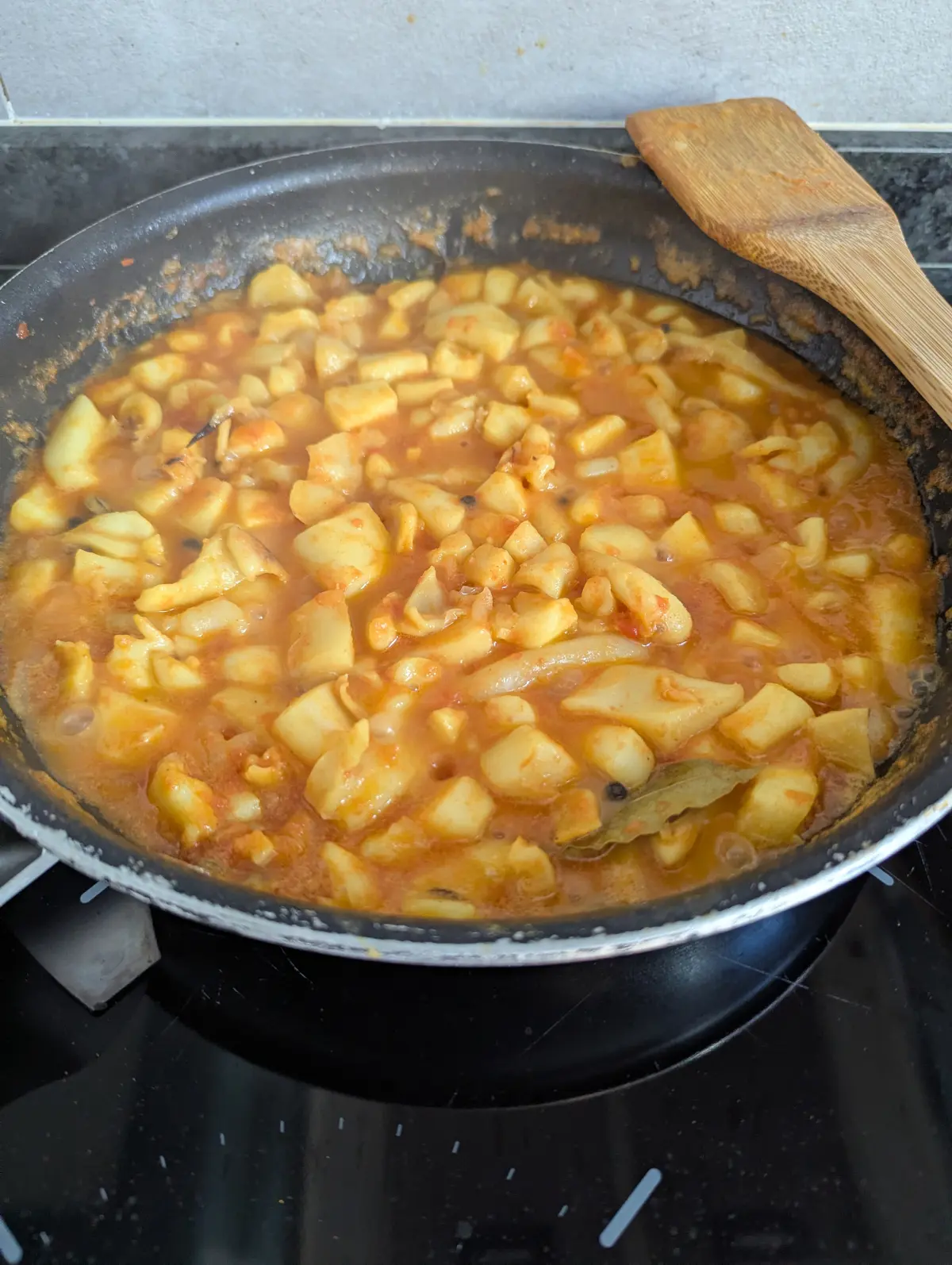 Dejamos que se haga a fuego suave, probamos de sal y antes de que se haya evaporado todo el caldo, probamos la jibia, por si fuese necesario añadir un poco de agua.