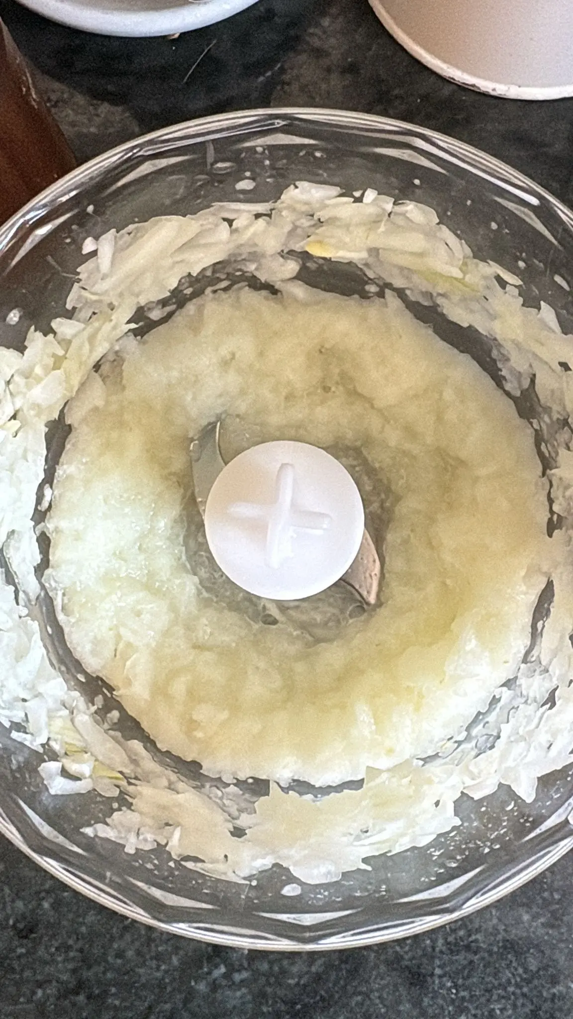 Pica la cebolla (yo la trituro en la picadora de mi minipimer para que quede MUY triturada y así se integre de forma homogénea en la salsa).