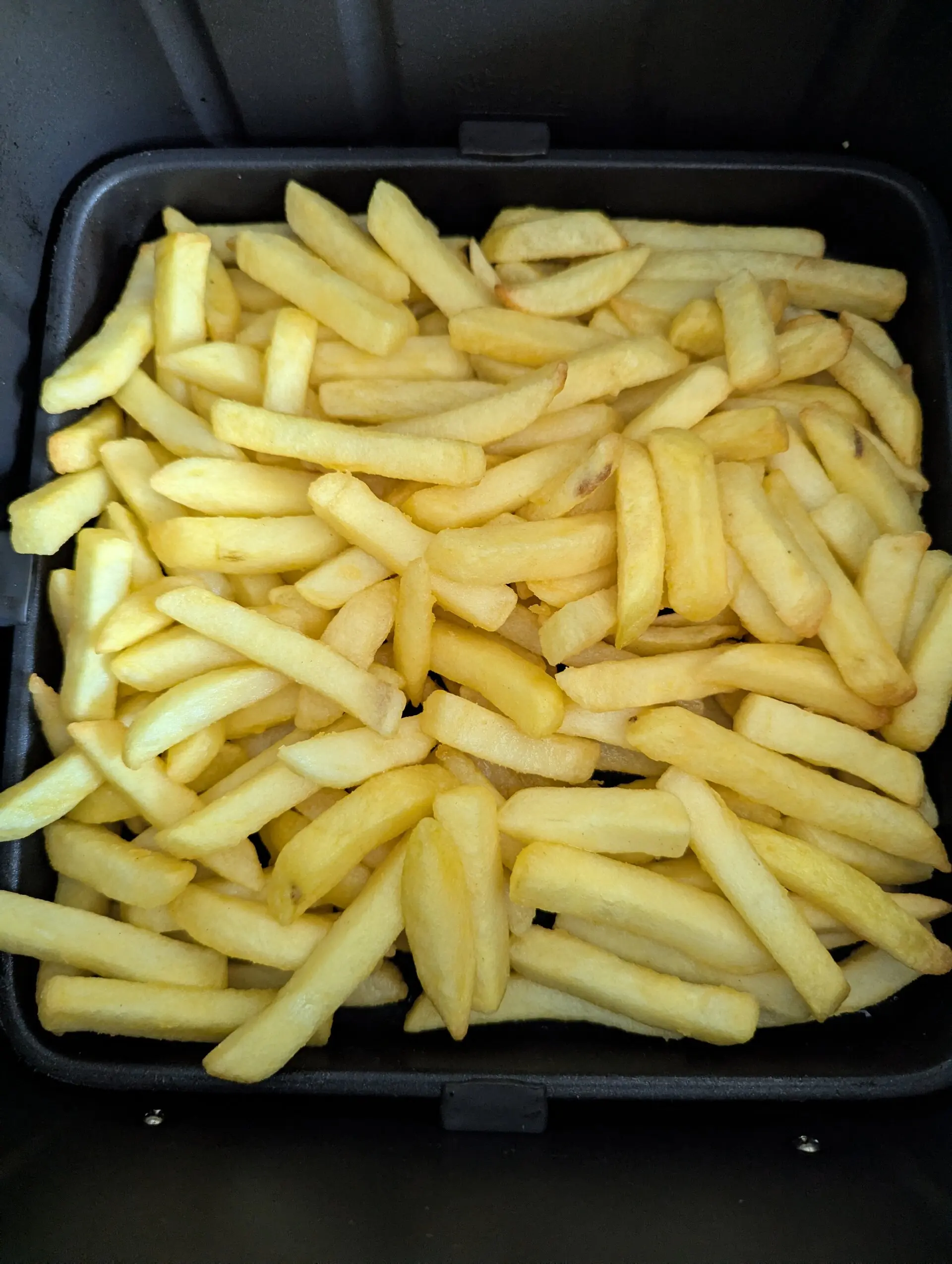 A mitad de tiempo podemos abrir la freidora y moverlas un poco.